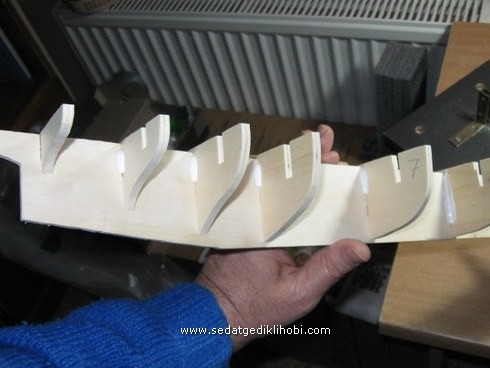 | Traverslerin montajına geçiyoruz. Dikkatinizi çekmiştir omurga ve postaları yapıştırırken hiçbir şekilde tezgahtan kaldırmadık. Bu sayede dönme yapmamış olacak. |