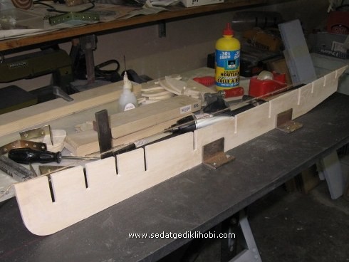 | Güverte hizasına destek amaçı çıtalar yapıştırıyoruz. |