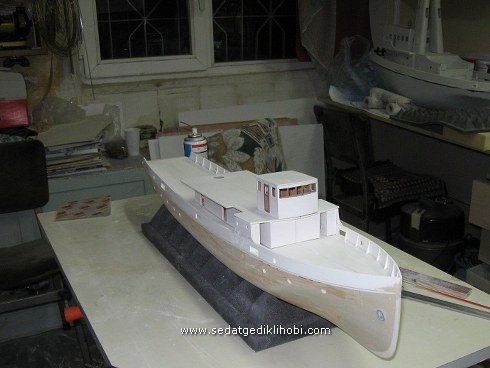 | Üst güverte destekleri yerlerine yapıştırıldı alt bina yerine alıştırıldı üst güverte yerine alıştırılıyor. |